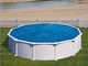 Żagiel solarny bąbelkowy do basenów GRE - okrąg o średnicy 2,4m. Rzeczywista średnica żagla słonecznego wynosi ok. 2,45m.