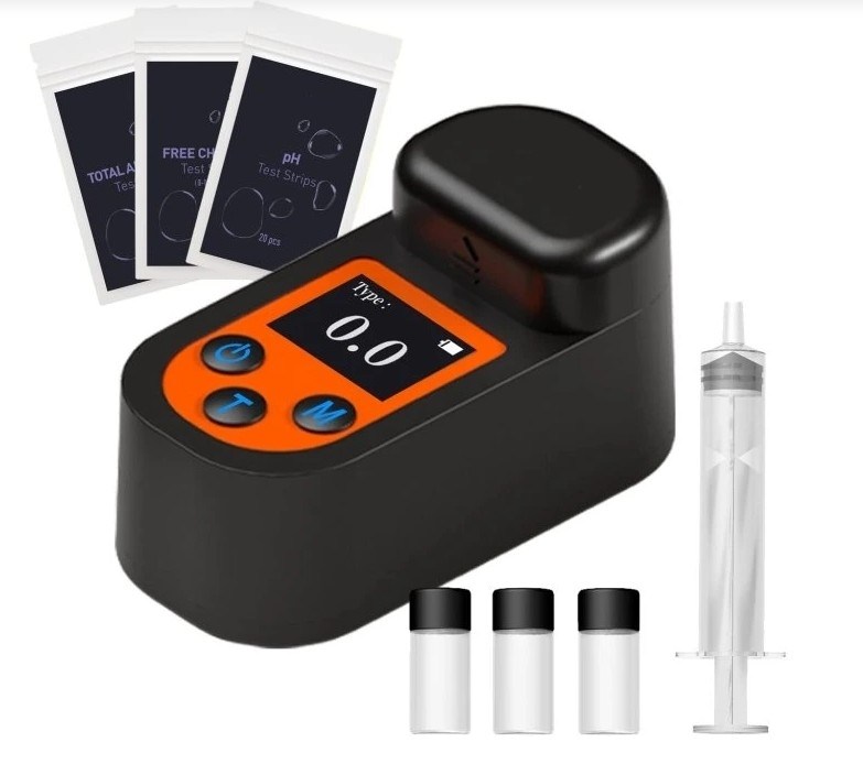Fotometr paskowy do analizy wody TR-1000 zapewnia szybki i stosunkowo dokładny pomiar pH, chloru i zasadowości. Pomiar odbywa się za pomocą pasków testowych zamiast tradycyjnych tabletek lub odczynników w płynie.