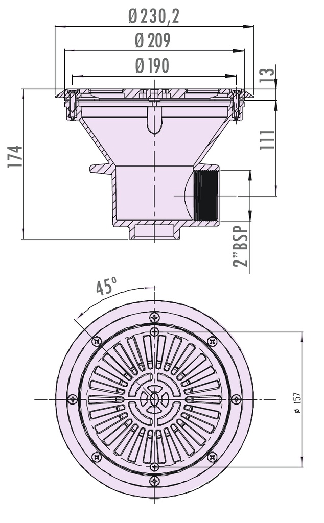 Odpływ dolny przeznaczony jest do basenów z wykładziną.