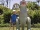 Nadmuchiwany dinozaur w dwóch wersjach: Tyrannosaurus lub Stegosaurus.
