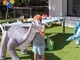 Nadmuchiwany dinozaur w dwóch wersjach: Triceratops lub Brontozaur.